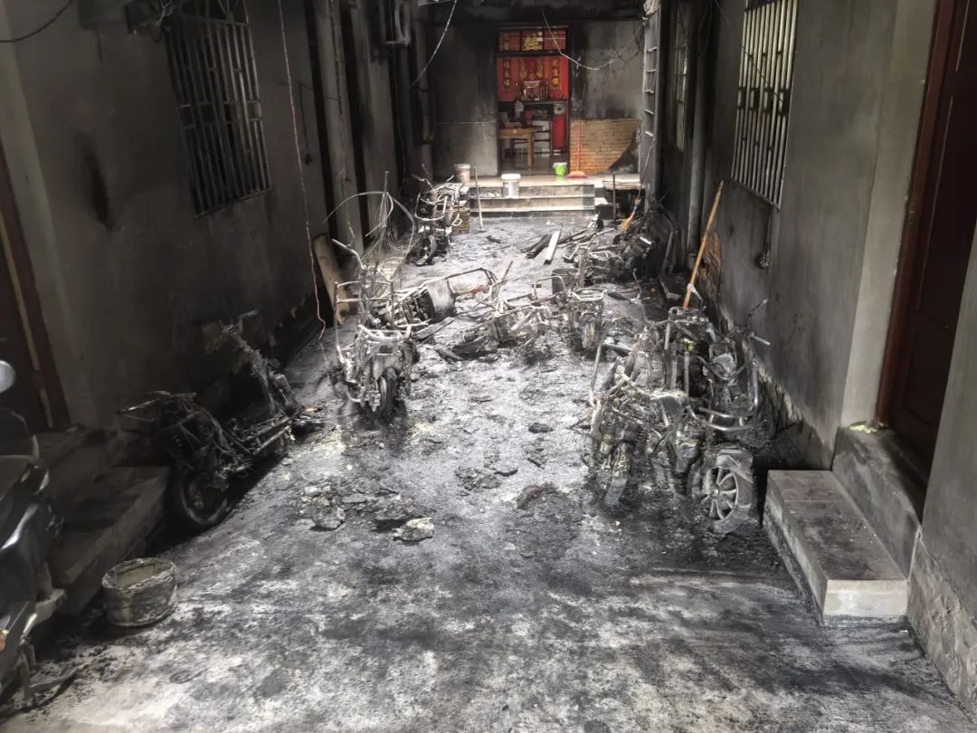 經(jīng)調(diào)查,該起火災(zāi)由出口處電動自行車電池自燃引發(fā)。該自建房的房屋安全出口、疏散通道處集中停放多輛電動自行車充電,且未設(shè)置任何消防設(shè)施。