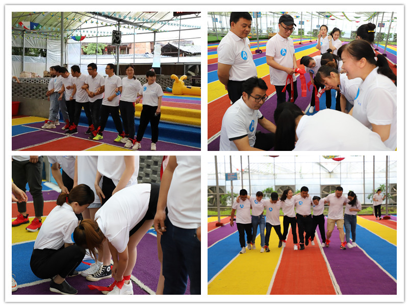 活動(dòng)現(xiàn)場熱鬧非凡,大家通過隨機(jī)抽簽的方式組成四支戰(zhàn)隊(duì),各戰(zhàn)隊(duì)由集團(tuán)及各子公司員工臨時(shí)組成,團(tuán)建活動(dòng)包括“多人多足”賽跑、“齊心協(xié)力毛毛蟲”接力和“你來比劃我來猜”三個(gè)集體項(xiàng)目,全面考驗(yàn)團(tuán)隊(duì)體力、腦力以及配合力。