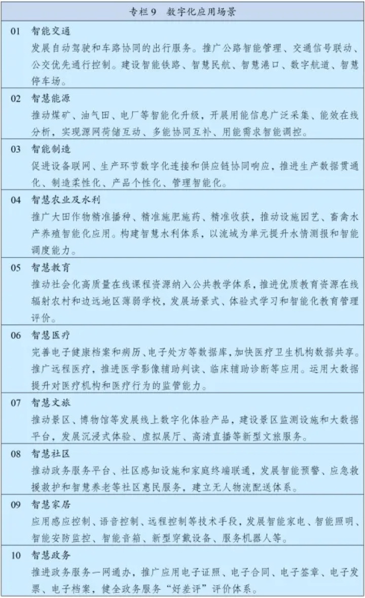 以數(shù)字化助推城鄉(xiāng)發(fā)展和治理模式創(chuàng)新,全面提高運行效率和宜居度。分級分類推進新型智慧城市建設(shè),將物聯(lián)網(wǎng)感知設(shè)施、通信系統(tǒng)等納入公共基礎(chǔ)設(shè)施統(tǒng)一規(guī)劃建設(shè),推進市政公用設(shè)施、建筑等物聯(lián)網(wǎng)應(yīng)用和智能化改造。完善城市信息模型平臺和運行管理服務(wù)平臺,構(gòu)建城市數(shù)據(jù)資源體系,推進城市數(shù)據(jù)大腦建設(shè)。探索建設(shè)數(shù)字孿生城市。加快推進數(shù)字鄉(xiāng)村建設(shè),構(gòu)建面向農(nóng)業(yè)農(nóng)村的綜合信息服務(wù)體系,建立涉農(nóng)信息普惠服務(wù)機制,推動鄉(xiāng)村管理服務(wù)數(shù)字化。