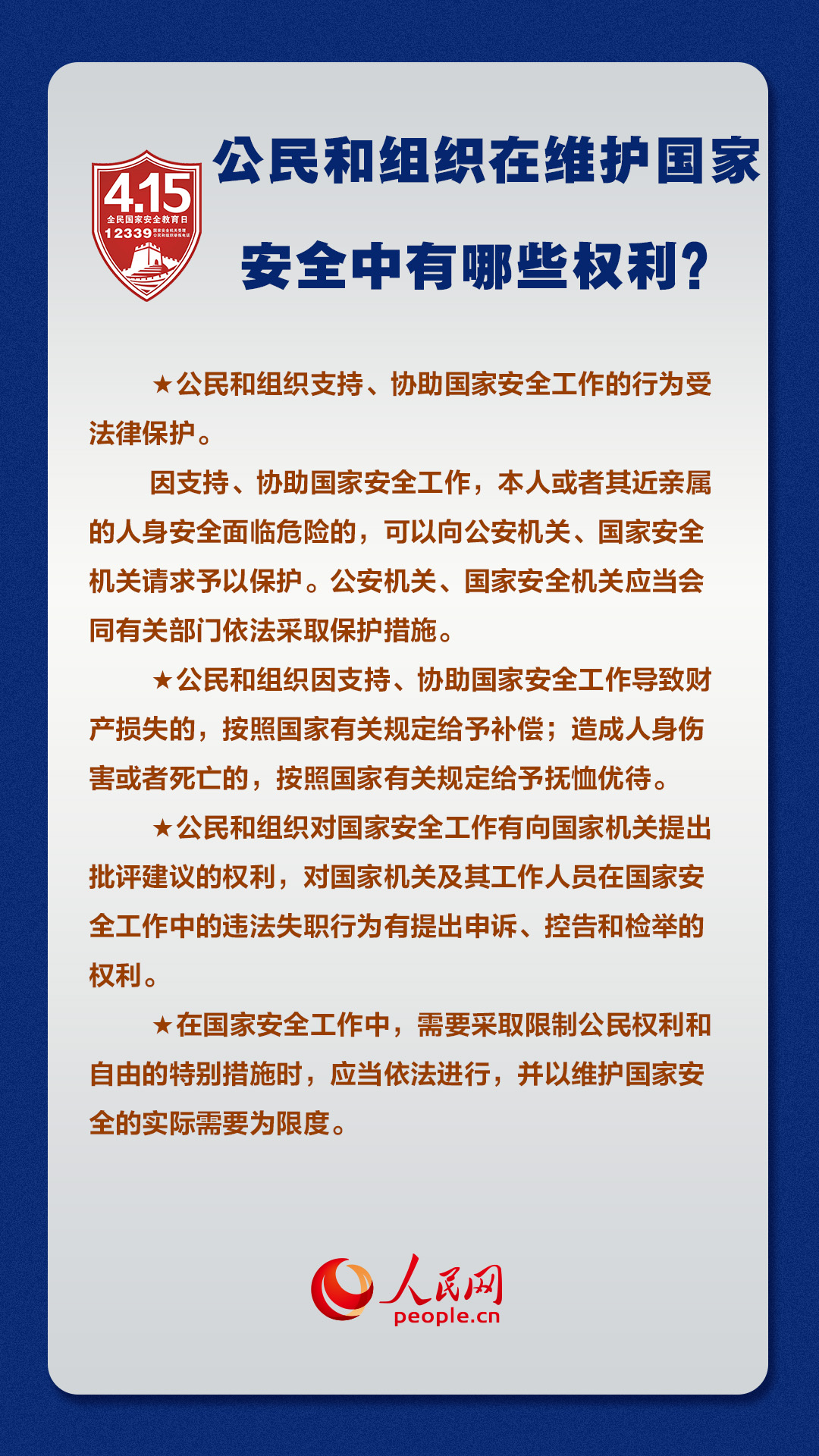 今年4月15日是第六個全民國家安全教育日。今年的活動主題為“踐行總體國家安全觀,統(tǒng)籌發(fā)展和安全,統(tǒng)籌傳統(tǒng)安全和非傳統(tǒng)安全,營造慶祝建黨100周年良好氛圍”。