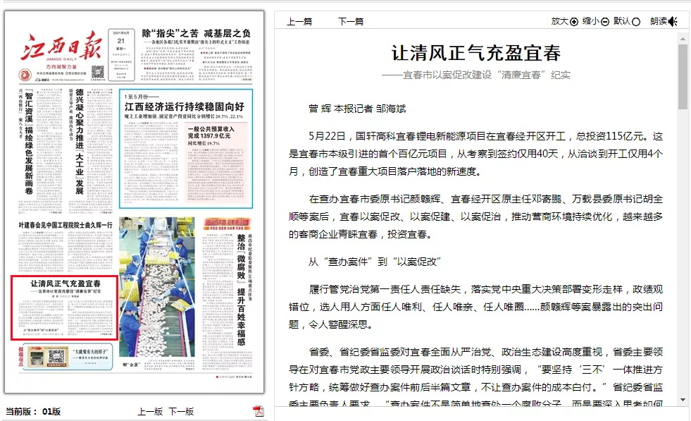 營(yíng)商環(huán)境的不斷優(yōu)化,穩(wěn)住了經(jīng)濟(jì)基本盤。在涉顏贛輝案的重災(zāi)區(qū)宜春經(jīng)開區(qū),無一家企業(yè)因查辦案件影響而外遷,多家企業(yè)在這里擴(kuò)大投資,還吸引了首個(gè)百億元級(jí)的國(guó)軒高科項(xiàng)目落戶。