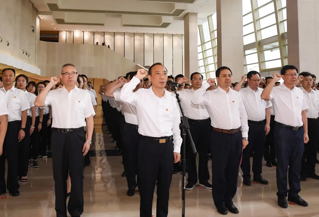 市委書記于秀明領(lǐng)誓并講話。市委副書記、市長(zhǎng)嚴(yán)允主持。張鑒武、陳榮等市四套班子黨員領(lǐng)導(dǎo)出席活動(dòng)。