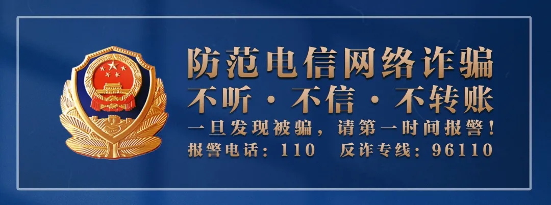 6.如發(fā)現(xiàn)被騙,請立即撥打110或者到就近公安機關(guān)報案。