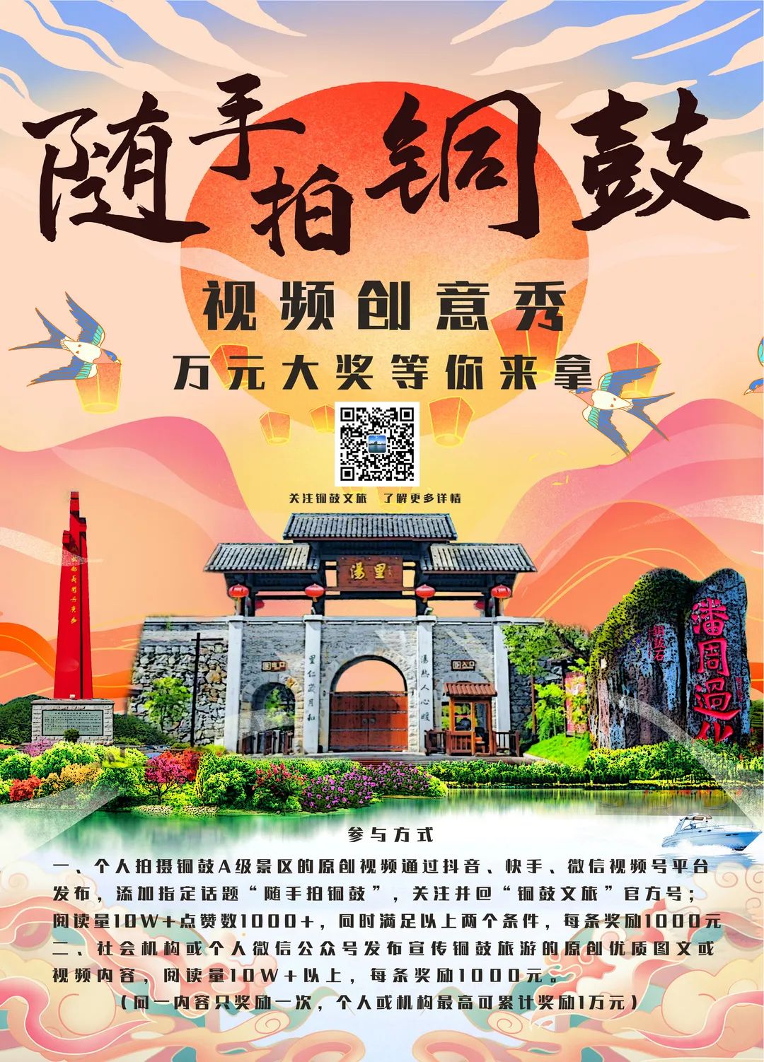 關(guān)注“銅鼓文旅”公眾號(hào),并在文章底部點(diǎn)贊、點(diǎn)亮“在看”,同時(shí)將此文鏈接轉(zhuǎn)發(fā)朋友圈并集滿99個(gè)贊,可享受價(jià)值268元湯里景區(qū)套票一張,還在等什么,趕快行動(dòng)吧!(僅限50名)