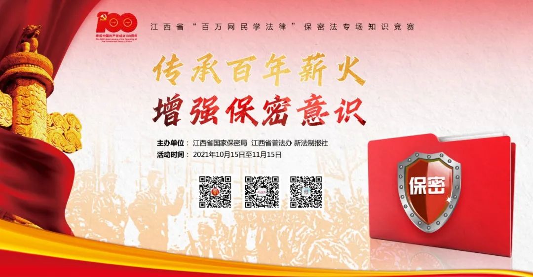 江西省保密局聯(lián)合江西省普法辦、新法制報社,將在全省開展2021年江西省“百萬網(wǎng)民學(xué)法律”保密法專場知識競賽活動。