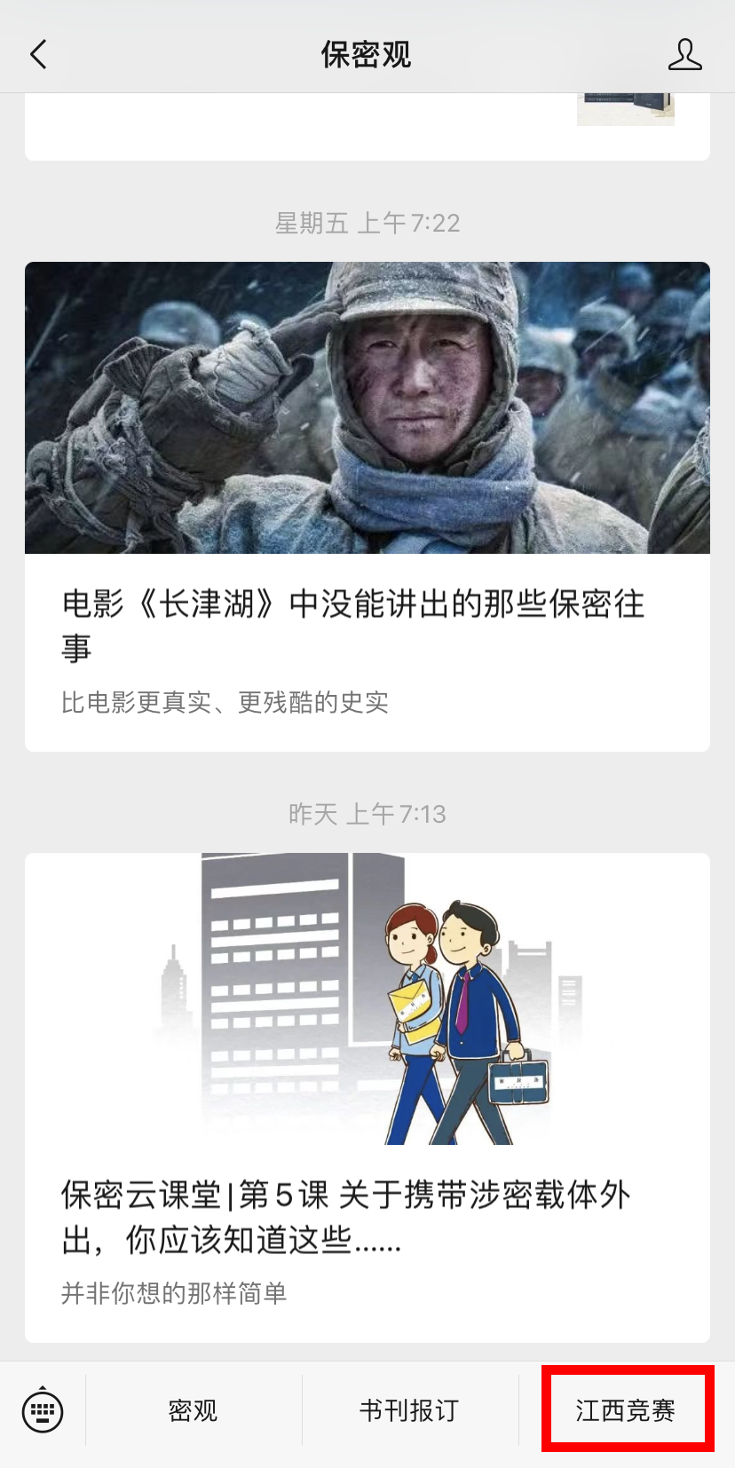 手機關(guān)注“保密觀”微信公眾號,點擊“江西競賽”欄目。