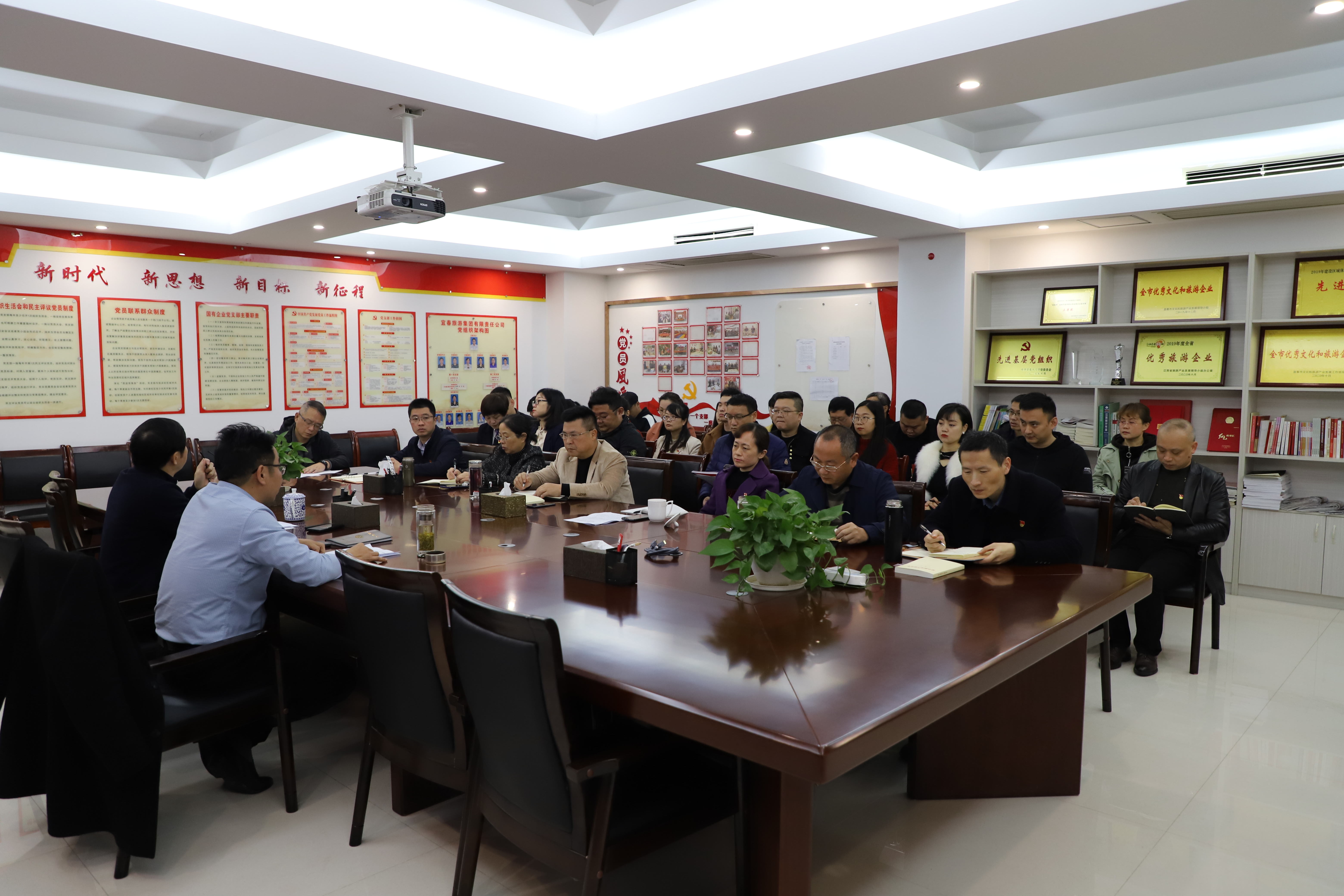 10月18日,宜春旅游集團召開黨委理論中心組(擴大)會議,傳達學習市第五次黨代會精神。會議由黨委書記、董事長陳見華主持,公司黨委班子成員、集團本部中層以上干部及子公司負責人參會。