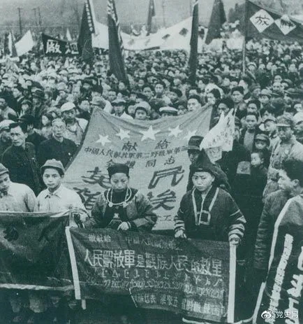 1949年11月15日,貴州解放。圖為苗族同胞向人民解放軍部隊獻(xiàn)旗。