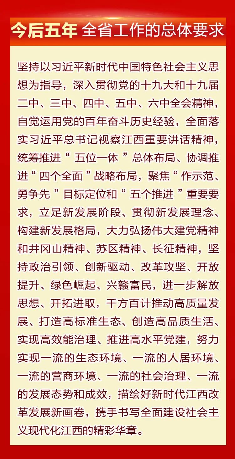 大會(huì)主題是:高舉習(xí)近平新時(shí)代中國特色社會(huì)主義思想偉大旗幟,深入貫徹落實(shí)習(xí)近平總書記視察江西重要講話精神,動(dòng)員全省廣大黨員和干部群眾,從黨的百年奮斗重大成就和歷史經(jīng)驗(yàn)中汲取智慧和力量,大力弘揚(yáng)偉大建黨精神和井岡山精神、蘇區(qū)精神、長征精神,咬定“作示范、勇爭先”的目標(biāo)要求,進(jìn)一步解放思想、開拓進(jìn)取,攜手書寫全面建設(shè)社會(huì)主義現(xiàn)代化江西的精彩華章。