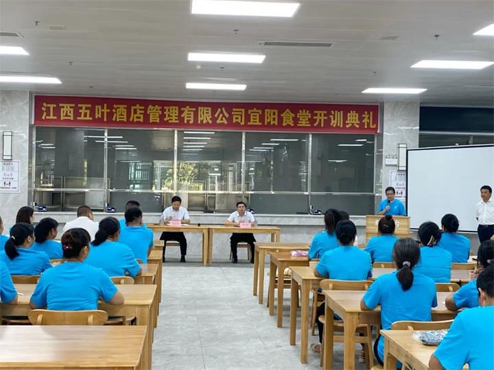 宜春旅游集團(tuán)轄屬江西五葉酒店管理有限公司宜陽食堂開業(yè)在即,為規(guī)范從業(yè)人員服務(wù)操作,提高項(xiàng)目管理水平,增強(qiáng)安全防范意識,根據(jù)籌備組工作部署,8月26日上午,開訓(xùn)典禮活動(dòng)在宜陽東食堂如期舉行,受宜春旅游集團(tuán)黨委委員、董事、副總經(jīng)理陽磊委托,宜陽食堂籌備組左建群主持開訓(xùn)典禮,食堂籌備組成員、勞務(wù)外包單位負(fù)責(zé)人以及招聘人員共計(jì)50余人參加了典禮儀式。